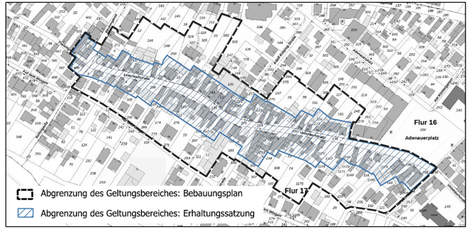 Der Rat der Stadt Niederkassel hat in seiner Sitzung am 25.02.2025 einen Aufstellungsbeschluss gemäß § 2 Abs. 1 BauGB für den Bebauungsplan 172 M mit integrierter Erhaltungssatzung sowie den Erlass einer Veränderungssperre gemäß § 14 BauGB beschlossen. Diese Beschlüsse wurden am 12.04.2025 bekannt gemacht.